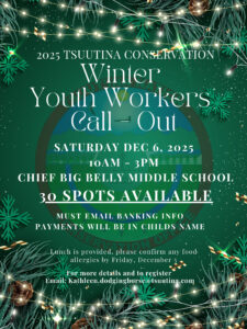Please be advised that the spots have been filled for the Tsuut’ina Conservation: 2025 Winter Youth Workers Program. Those who have been selected have been contacted.