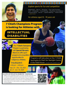 Please see the attached poster and information below for the 7 Chiefs Champions Special Olympics Tsuut’ina Program.
