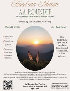 Please see the attached poster for the AA Roundup: Healing Through Grief – Finding Strength Together, hosted by the Tsuut’ina AA Group. Happening on March 21st – 22nd, 2026, at the Grey Eagle Hotel. Registration is now open!