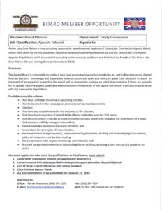 Please see the attached Board Member opportunity for Onion Lake Cree Nation Appeals Board.