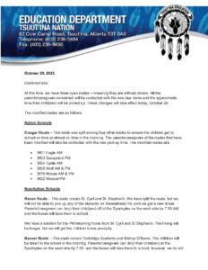 Please see the attached Letter regarding the busing update for October 29th, 2025.