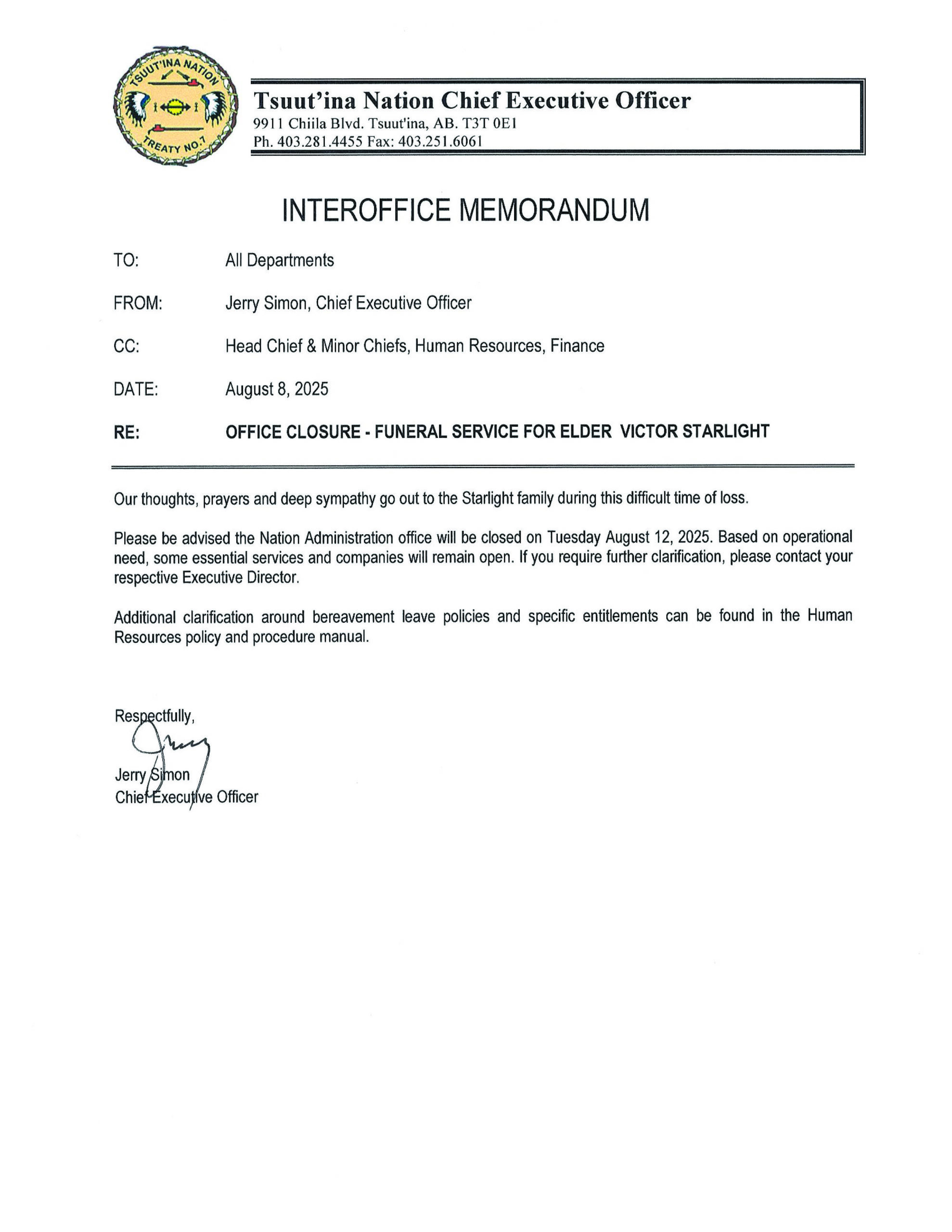 Dzīnísī gújā(Good day), Please be advised that the Nation Administration Office will be closed on Tuesday, August 12th, 2025. Sending our sincerest ...