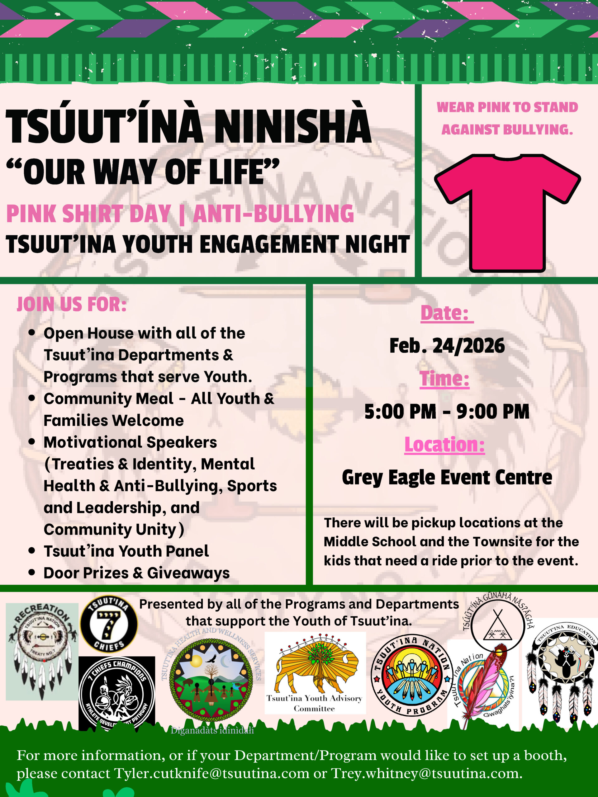 Dzīnísī gújā(Good day), Please see the attached poster for the Tsuut’ina Recreation Logo Contest. Deadline to submit is March 23rd, 2026. &...