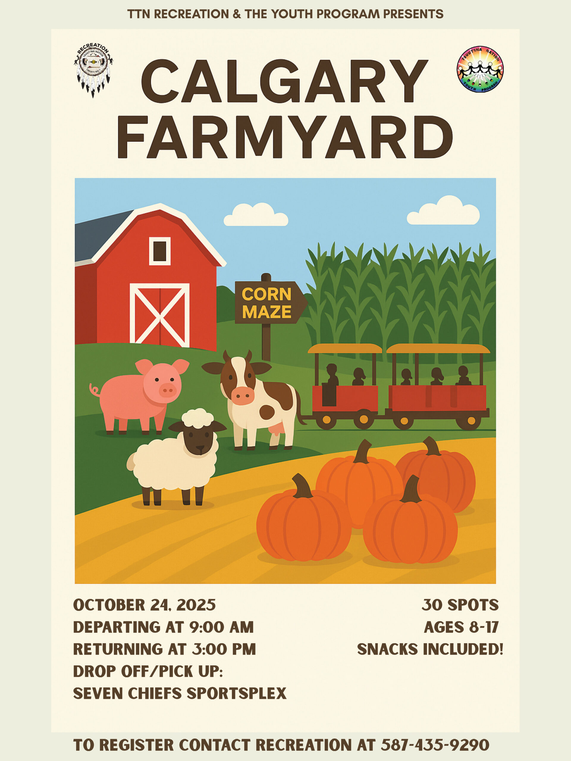 Gújá nágúdīgòy(Good morning), Please see the attached poster for upcoming Halloween events happening in Tsuut’ina on Friday, October 31...