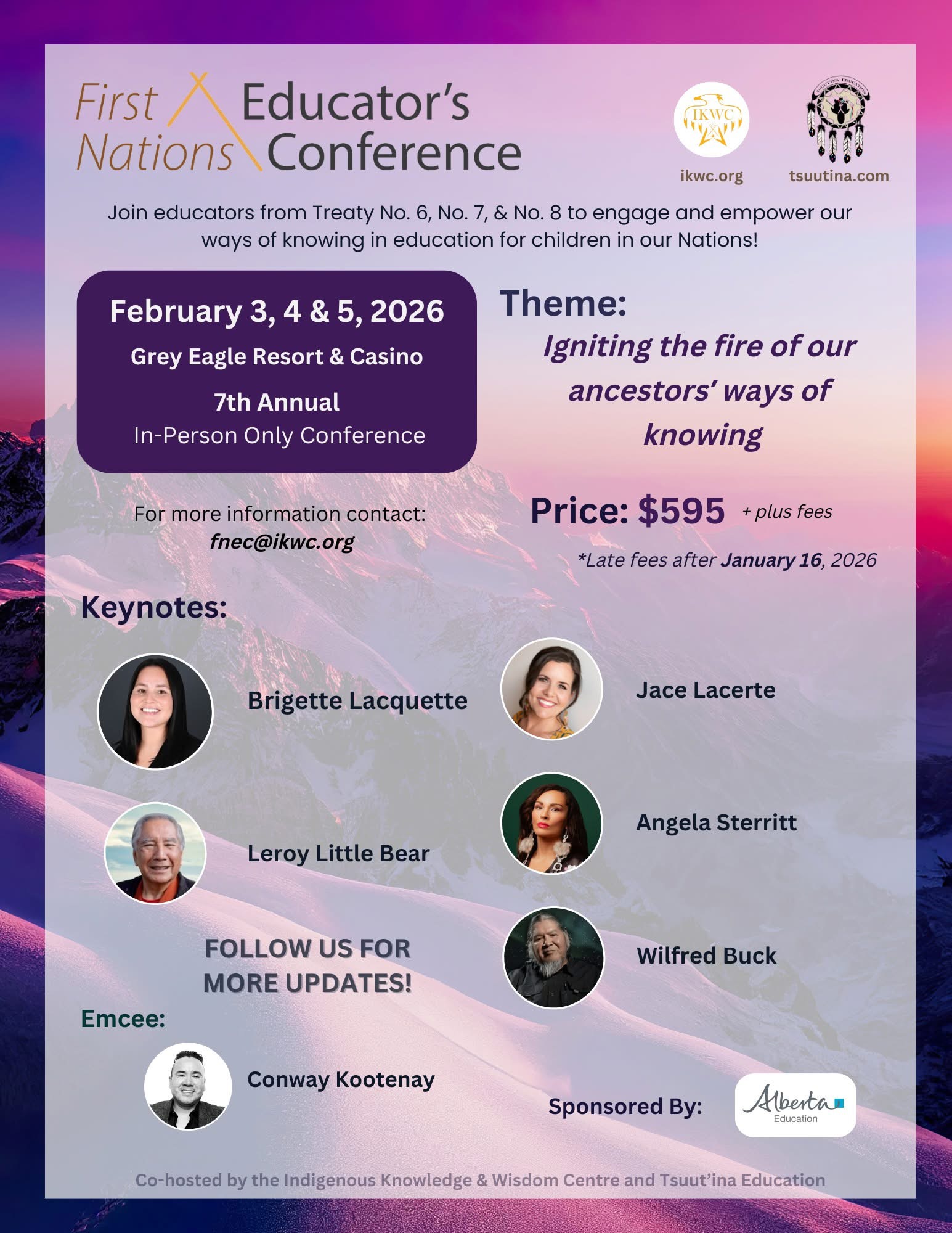 Dzīnísī gújā(Good day), Please see the attached poster for the 2026 First Nations Educators’ Conference, taking place on February 3rd, 4th, & 5...