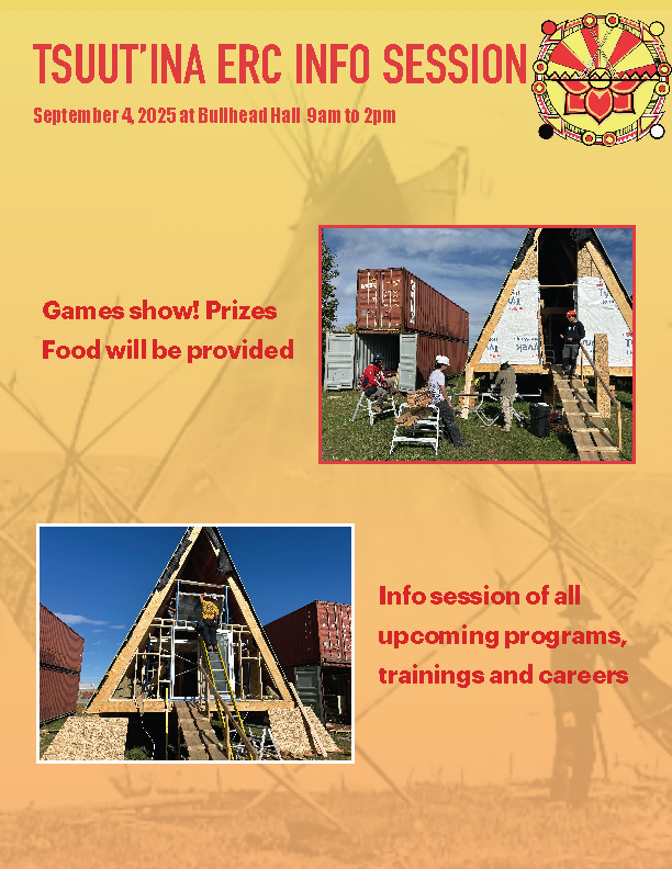 Gújá nágúdīgòy(Good morning), Please see the attached poster for the Tsuut’ina ERC Info Session held on September 4th, 2025, ...