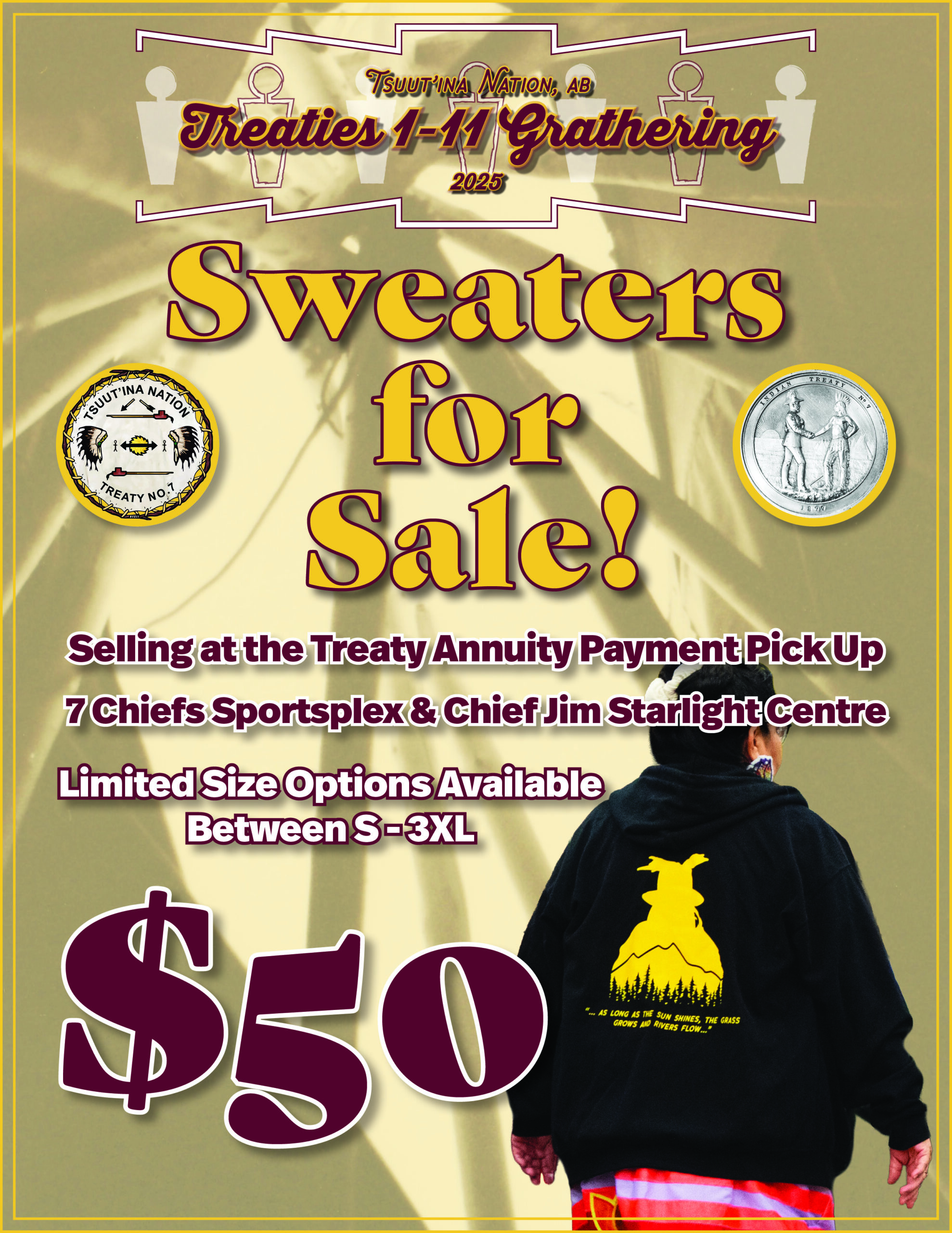 Gújá nágúdīgòy(Good morning), Please see the attached poster for the Treaties 1-11 Gathering 2025 sweater sale. Sweaters will be available ...