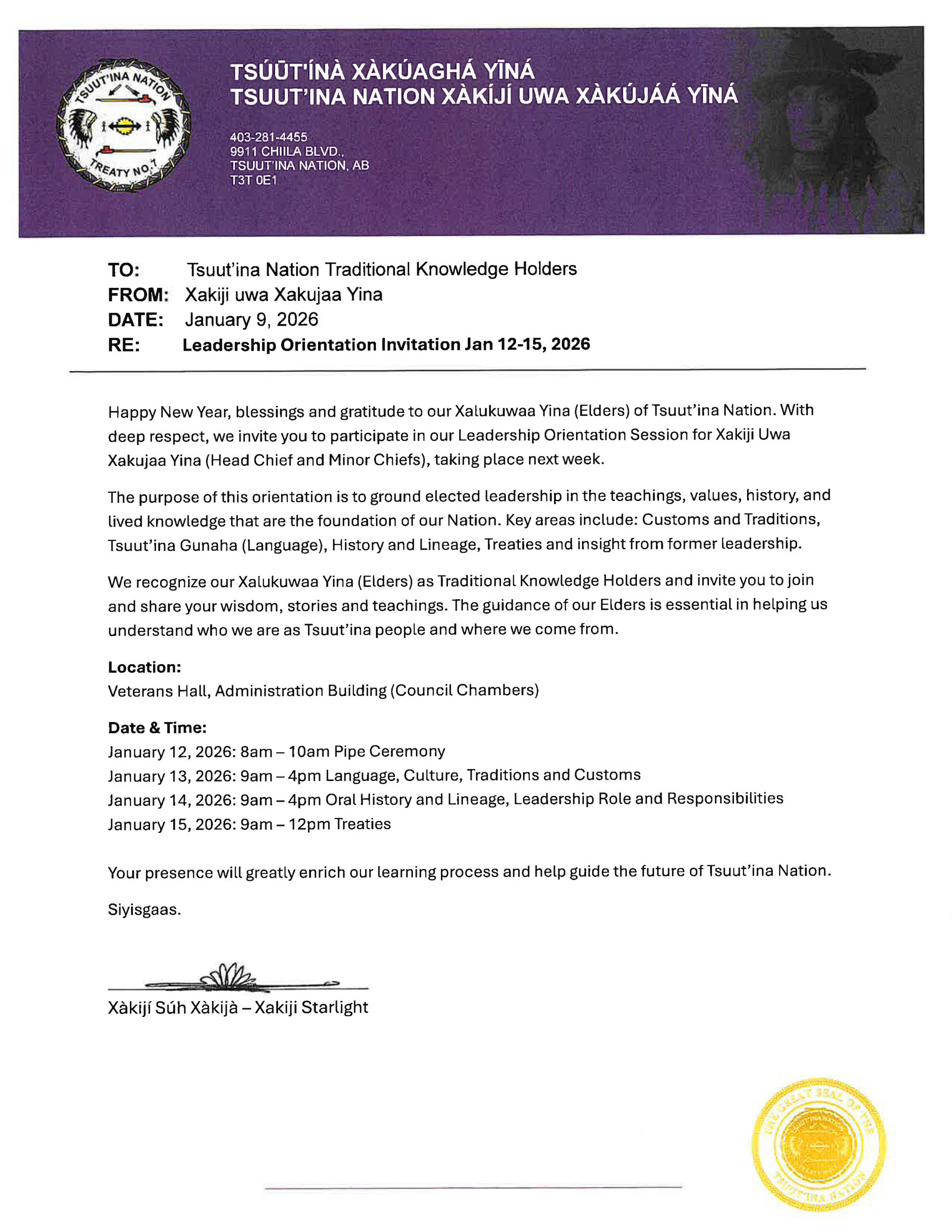 Gújá nágúdīgòy(Good morning), Please save the date for the Nation Meeting taking place on Wednesday, January 28th, 2026, at the ...