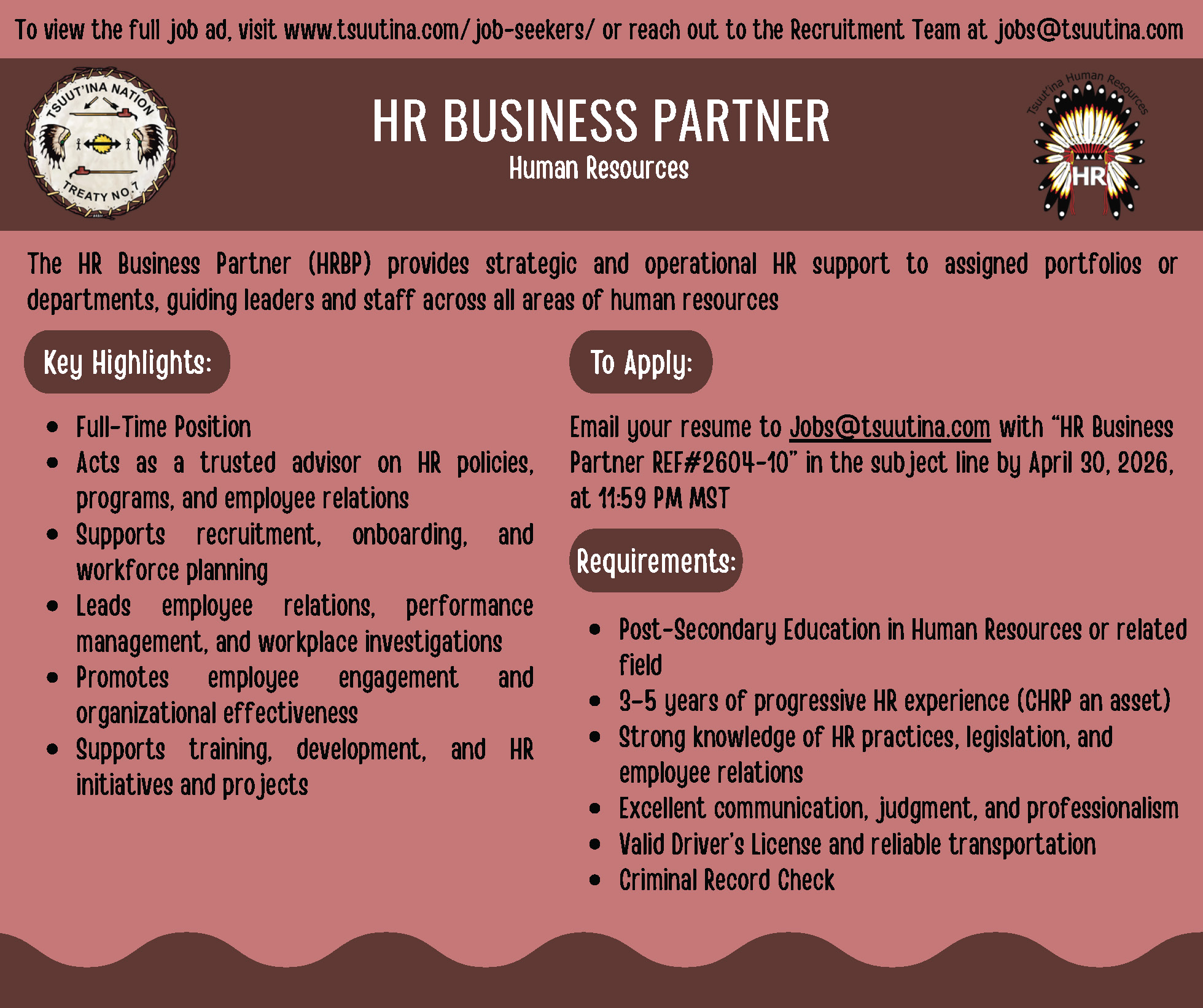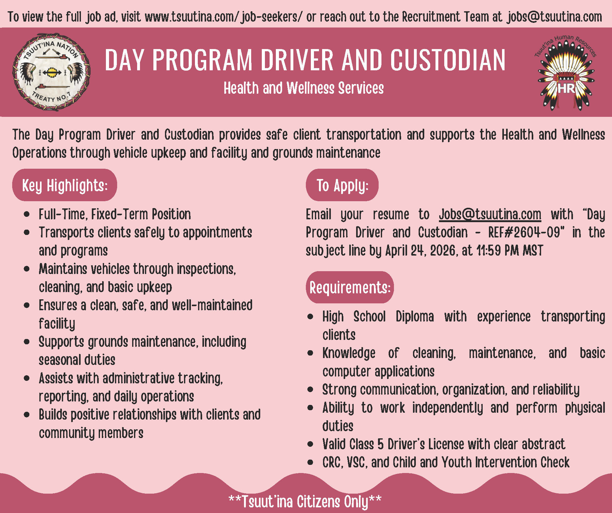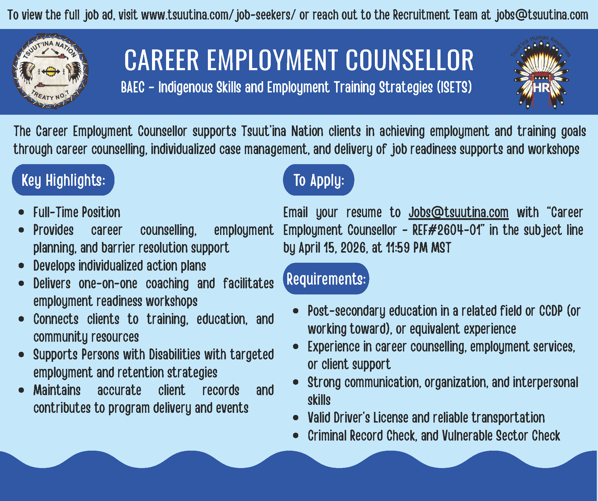 Dzīnísī gújā (Good day), Please see the attached position summary for the Career Employment Counsellor. Position Summary Poster for 2604-01 Sīyí...
