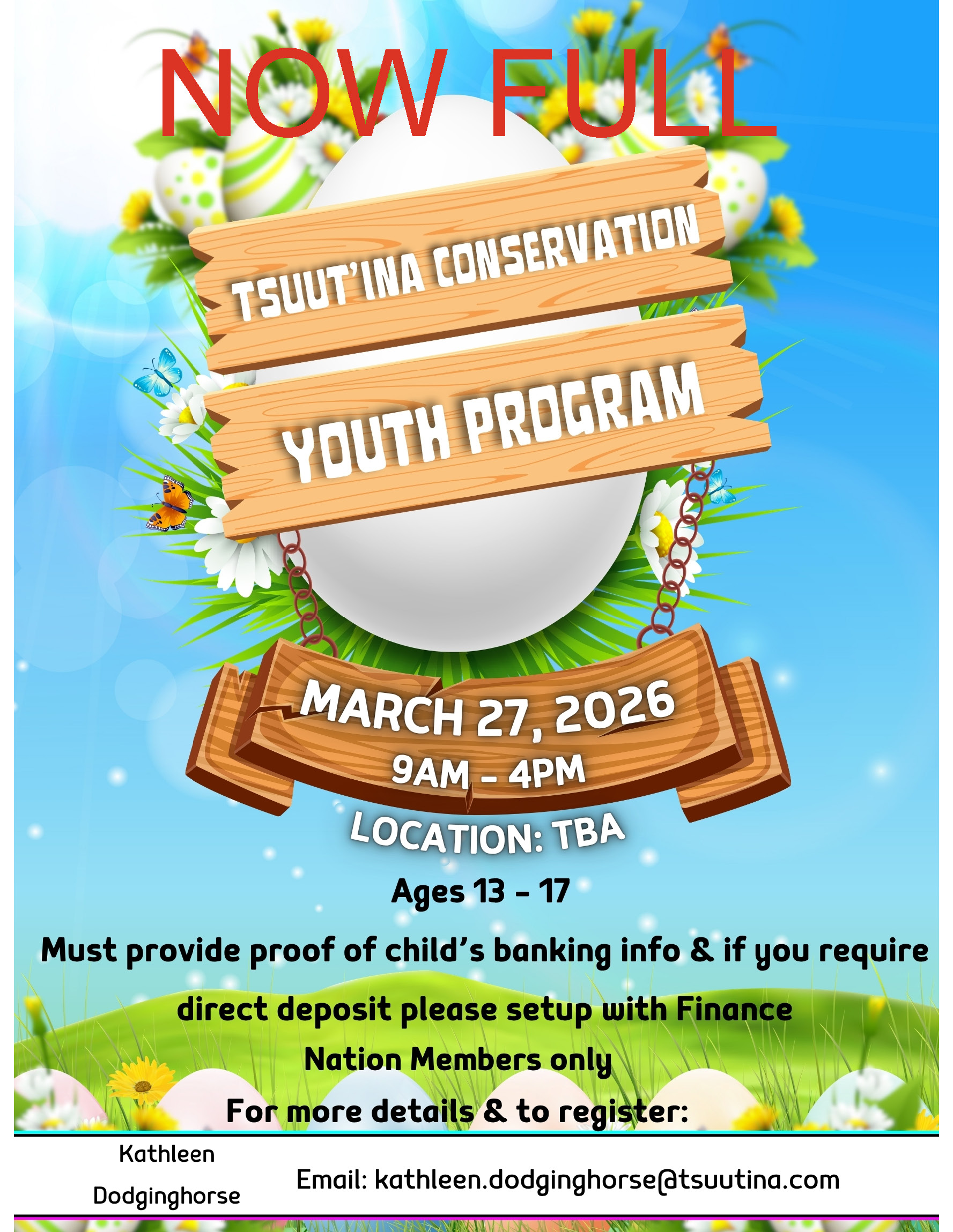 Diyí dzínisà Gújá Nágúdīgòy (Good morning), Please see the attached poster for the Tsuut’ina Conservation Youth Program on ...