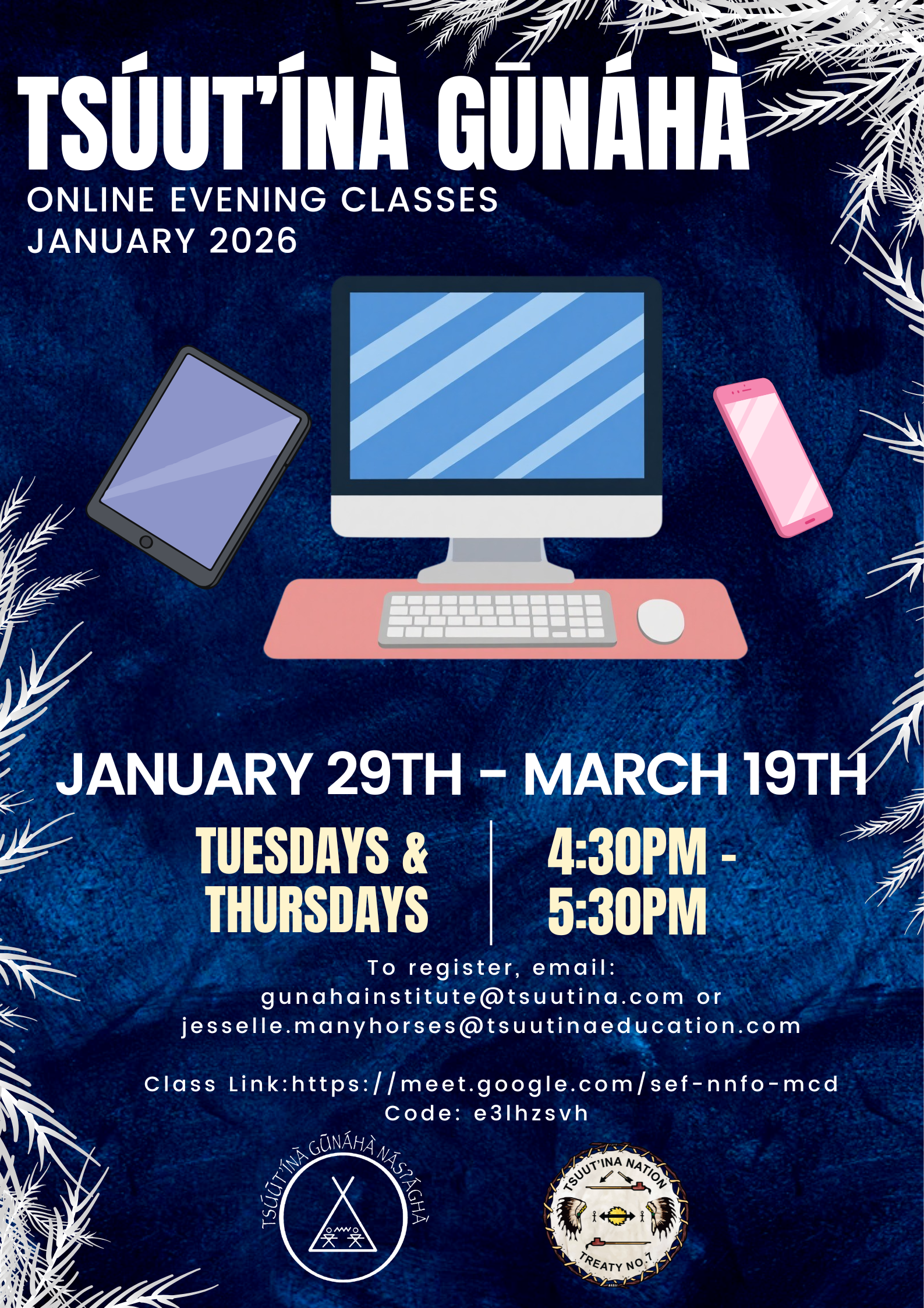 Tsuut’ina Gunaha Online Evening Classes – January – March 2026