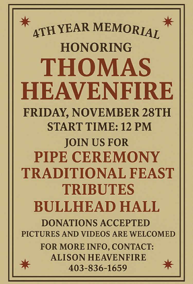 Dzīnísī gújā(Good day), The Heavenfire Family will be having a 4th Year Memorial for Tommy Heavenfire on Friday, November 28, 2025, from 12 PM ...