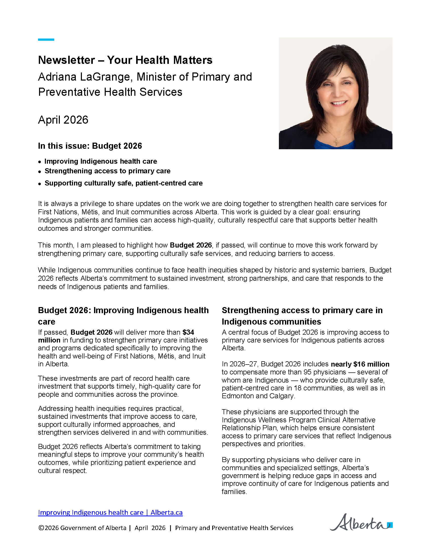 Diyí dzínisà Gújá Nágúdīgòy (Good morning), Please see attached Indigenous Health, Primary and Preventative Health Services, April 2026 ADM Newsletter. ...