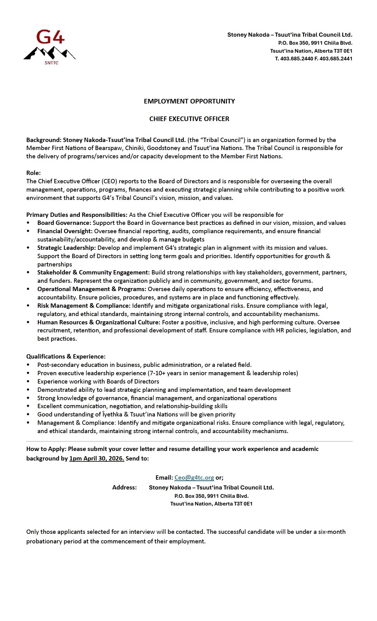 Dzīnísī gújā (Good day), Please see the attached employment opportunity for Chief Executive Officer, on behalf of G4. 20260407_SNTTC CEO Posting Apr 2026 ...