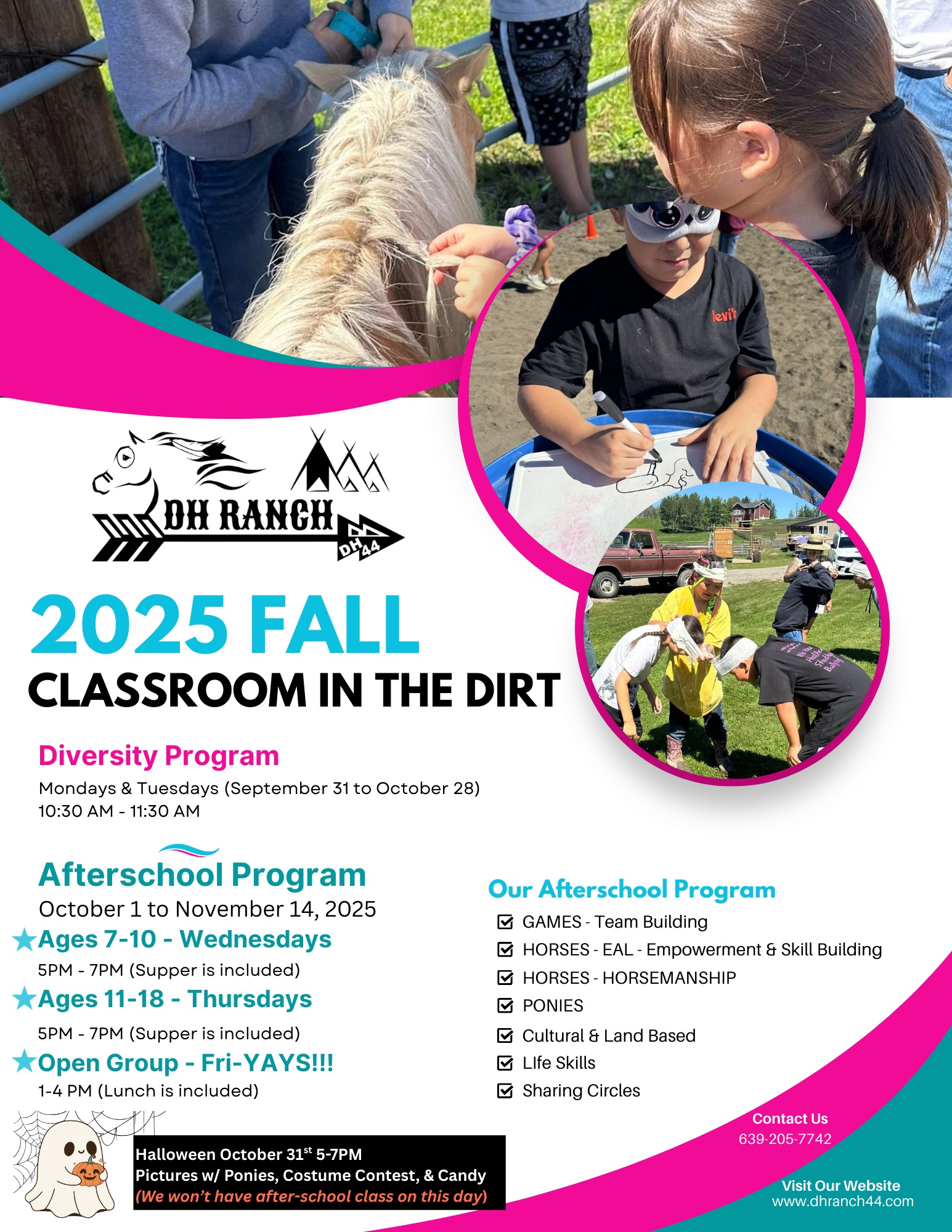 Gújá nágúdīgòy(Good morning), Please see the attached poster and information for the DH Ranch 2025 Fall Afterschool Program Schedule and ...