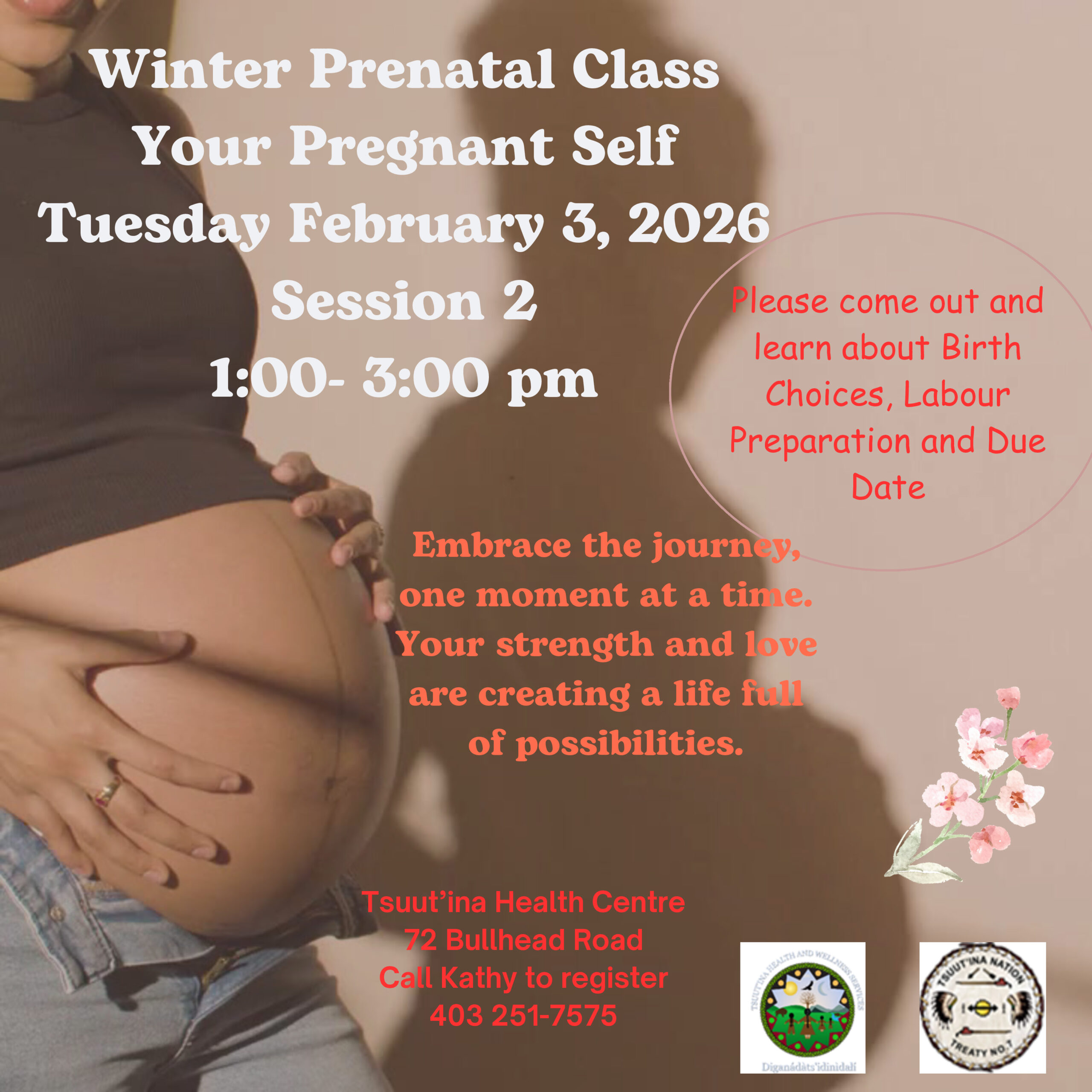 Dzīnísī gújā(Good day), Please see the attached poster regarding the next Winter Prenatal Class happening February 3rd, 2026 from 1:00PM-3:00PM. Winter ...