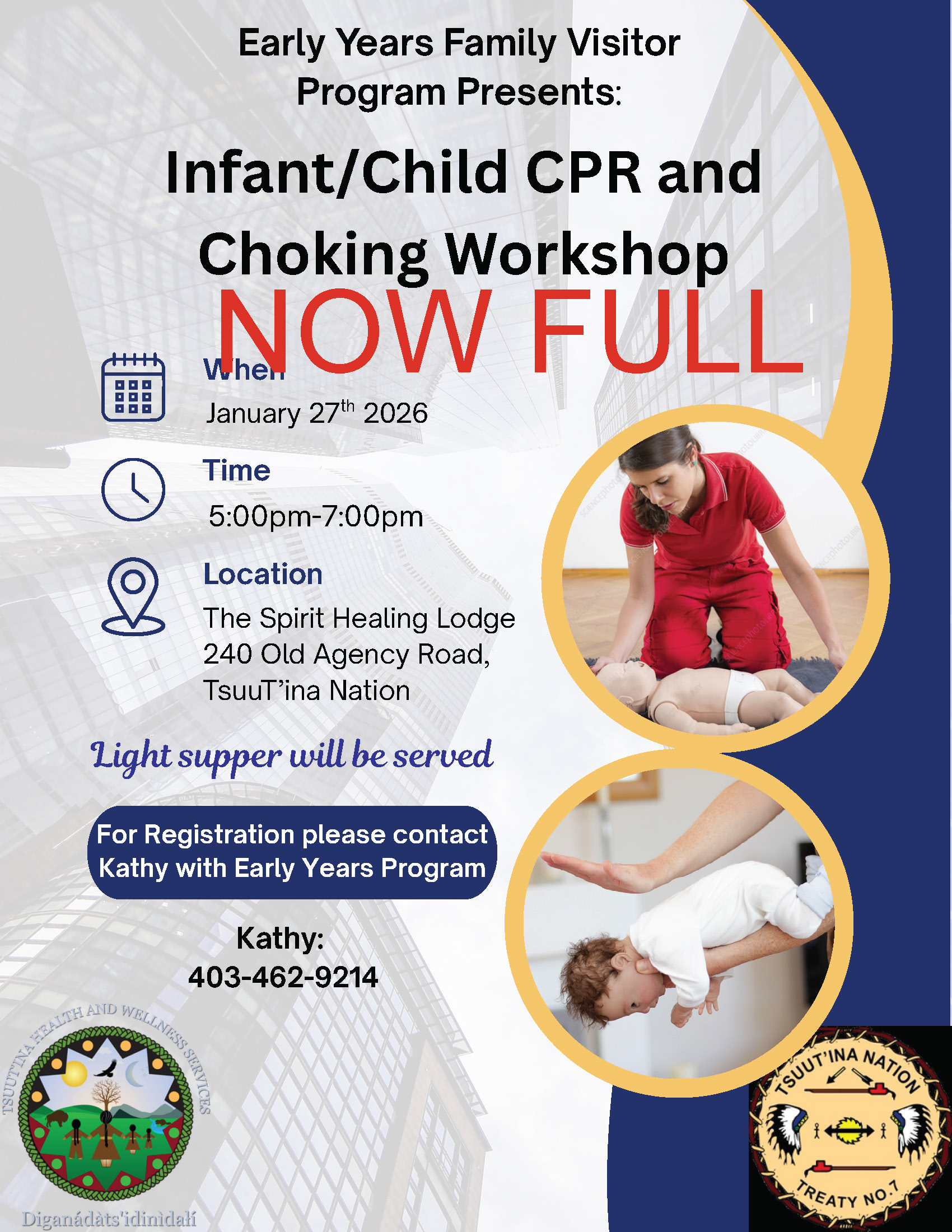 Diyí dzínisà Gújá Nágúdīgòy(Good morning), Please be advised that the Infant Child CPR Workshop is now full. Infant – ...