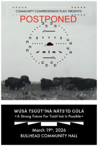 Please be advised that the CCP Event: Wúsà Tsuut’ina Nāts’īd Gūlá has been postponed for a later date out of respect for the Big Crow Family.