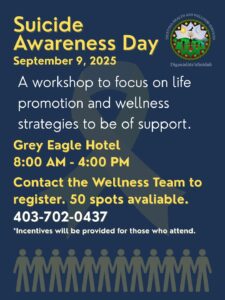 Join Tsuut’ina Health & Wellness Services for a workshop focused on life promotion, wellness strategies, and cultural strength within our Indigenous community.