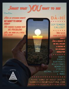 Please send your photos or submissions to submissions@tsuutina.com or communications@tsuutina.com before August 29th, 2025.