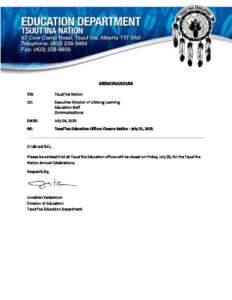 Tsuut’ina Education Offices Closure Notice – July 25, 2025