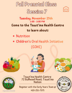 Please see the attached poster for the Fall Prenatal Class – Session 7 taking place on November 25th, 2025, from 1 PM – 3 PM. To register, contact the Early Years Team at 403-251-7575.