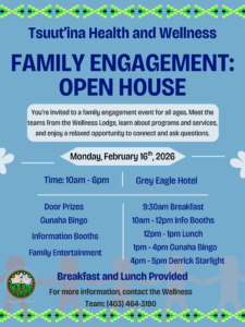 Please see the attached posters and information below on behalf of the Tsuut’ina Health and Wellness Team.