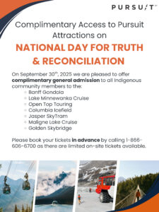 Please see the attached poster and message below for Free Admission on behalf of Pursuit Banff Jasper Collection Attractions on September 30th, 2025