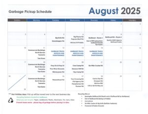 Please see the attached Garbage Pickup Schedule for August 2025.