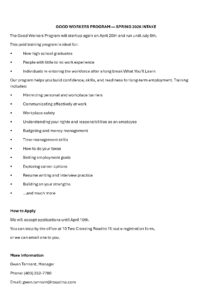 Please see the attached announcement on behalf of the Good Workers Program regarding the Spring 2026 Intake.