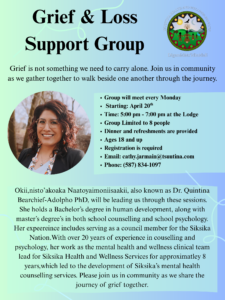 Please see the attached poster and information below for the upcoming Grief and Loss Support Group.