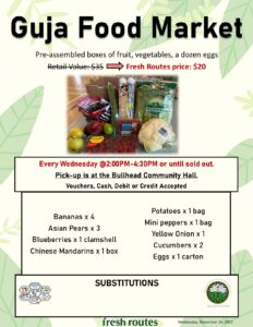 Please see the attached Guja Food Market list for today, November 26th, 2025, from 2:00 – 4:30 PM at the Bullhead Community Hall.