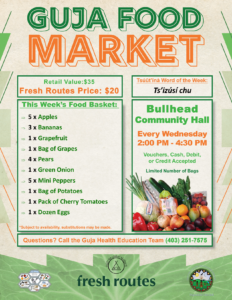 Please see the attached Guja Food Market list for today, March 11th, 2026, from 2:00 – 4:30 PM at the Bullhead Community Hall.