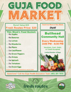 Please see the attached Guja Food Market list for today, March 18th, 2026, from 2 PM – 4:30 PM at the Bullhead Community Hall.