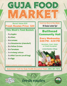 Please see the attached list for Guja Food Market today, April 8th, 2026, from 2 PM – 4:30 PM at the Bullhead Community Hall.