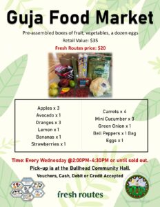 Please see the attached Guja Food Market list for today, January 14th, 2026, from 2:00 – 4:30 PM at the Bullhead Community Hall.