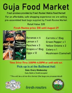 Please see the Guja Food Market list for today, August 27th, 2025, from 2 PM – 4:30 PM at the Bullhead Community Hall.