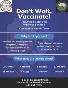 Please see the attached information from the Tsuut’ina Health and Wellness regarding immunization awareness.