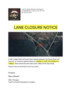 Please see attached notice for ongoing & upcoming lane closures on 6 Mile Coulee Road in Tsuut’ina.