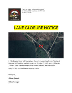 Lane Closure Notice-6 Mile Coulee Road for October 7, 2025