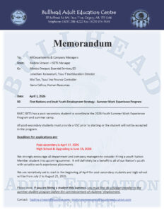 Please see the attached memo regarding the 2026 Youth Summer Work Experience.