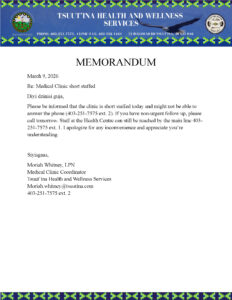 Please be advised that the clinic is short staffed today and might not be able to answer the phone. For more information please see attached.