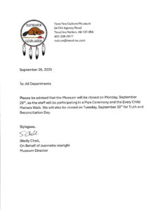 Please see the attached memo regarding the Museum closure on September 29th & 30th, 2025.