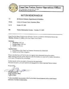 Please see the attached memo for the upcoming Nation Information Session scheduled for October 27, 2025.