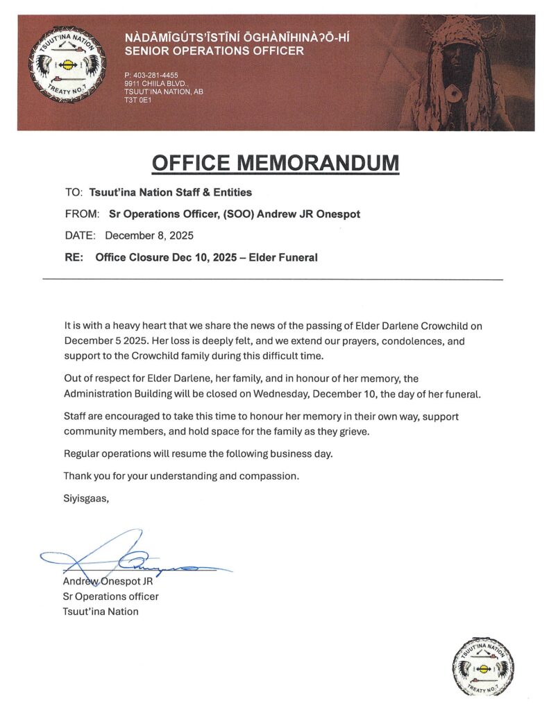 MEMO – Office Closure Dec 10, 2025 – Elder Funeral