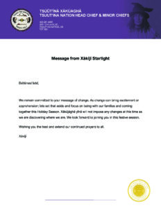 Please see a message from our Xàkíjí (Head Chief) Starlight.