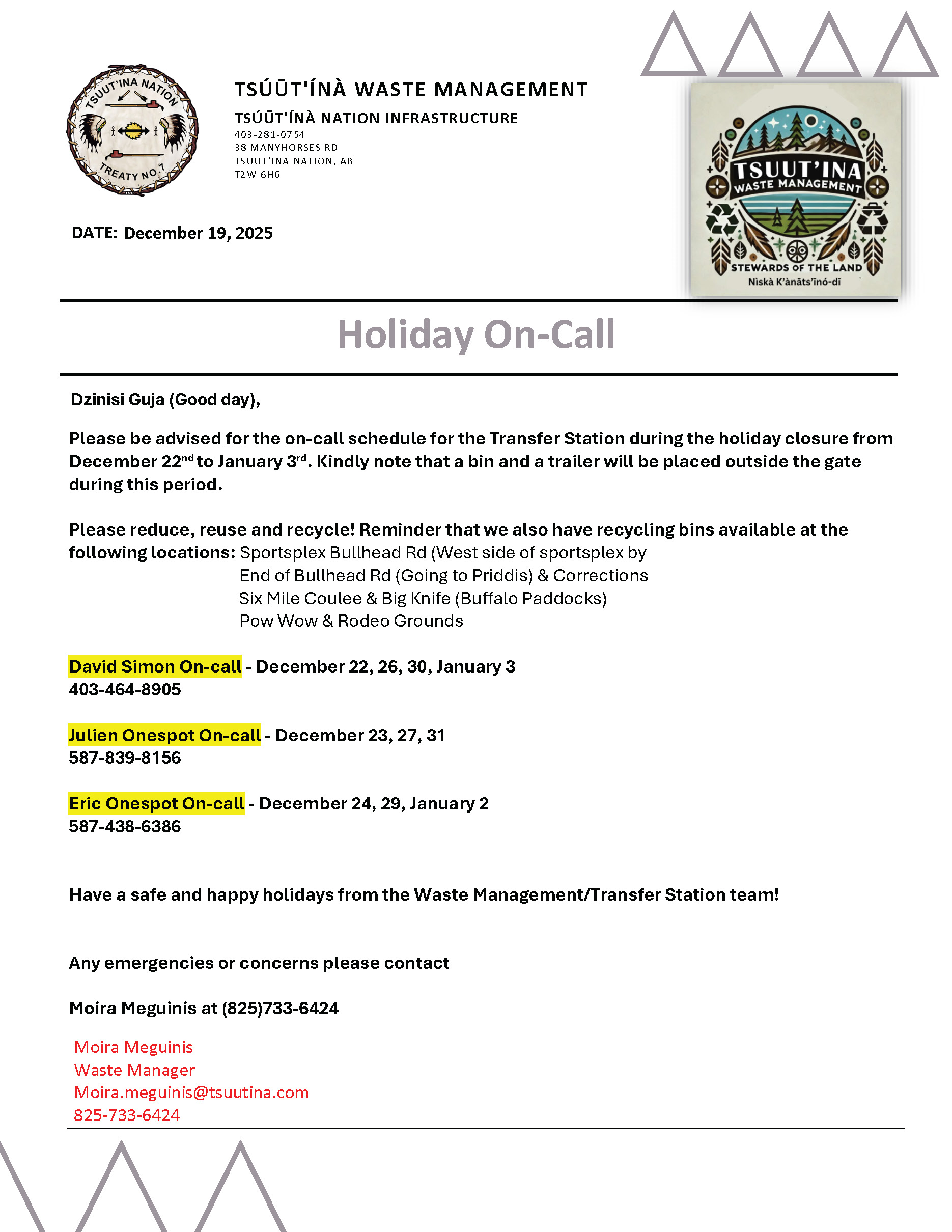 Dzīnísī gújā(Good day), Please see the attached community notice from Tsuut’ina Roads Maintenance Program regarding the snow removal process. Community ...