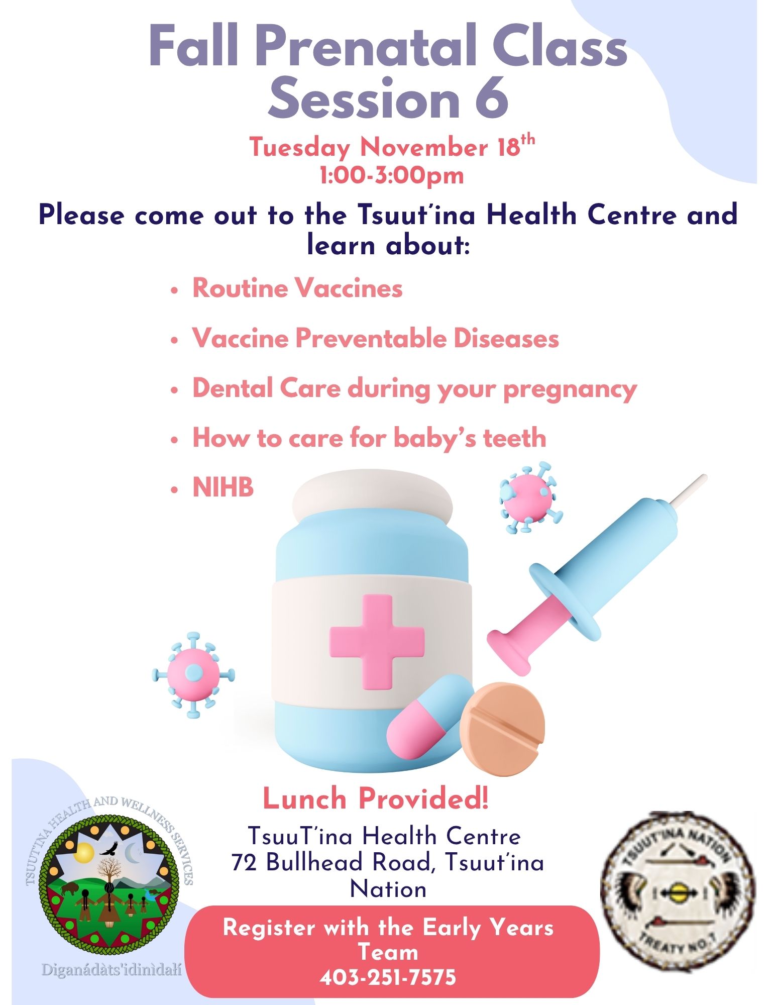 Gújá nágúdīgòy(Good morning), Please see the attached poster for the upcoming Prenatal Class – Session 6 on Tuesday, November 18th, 2025, from 1 ...