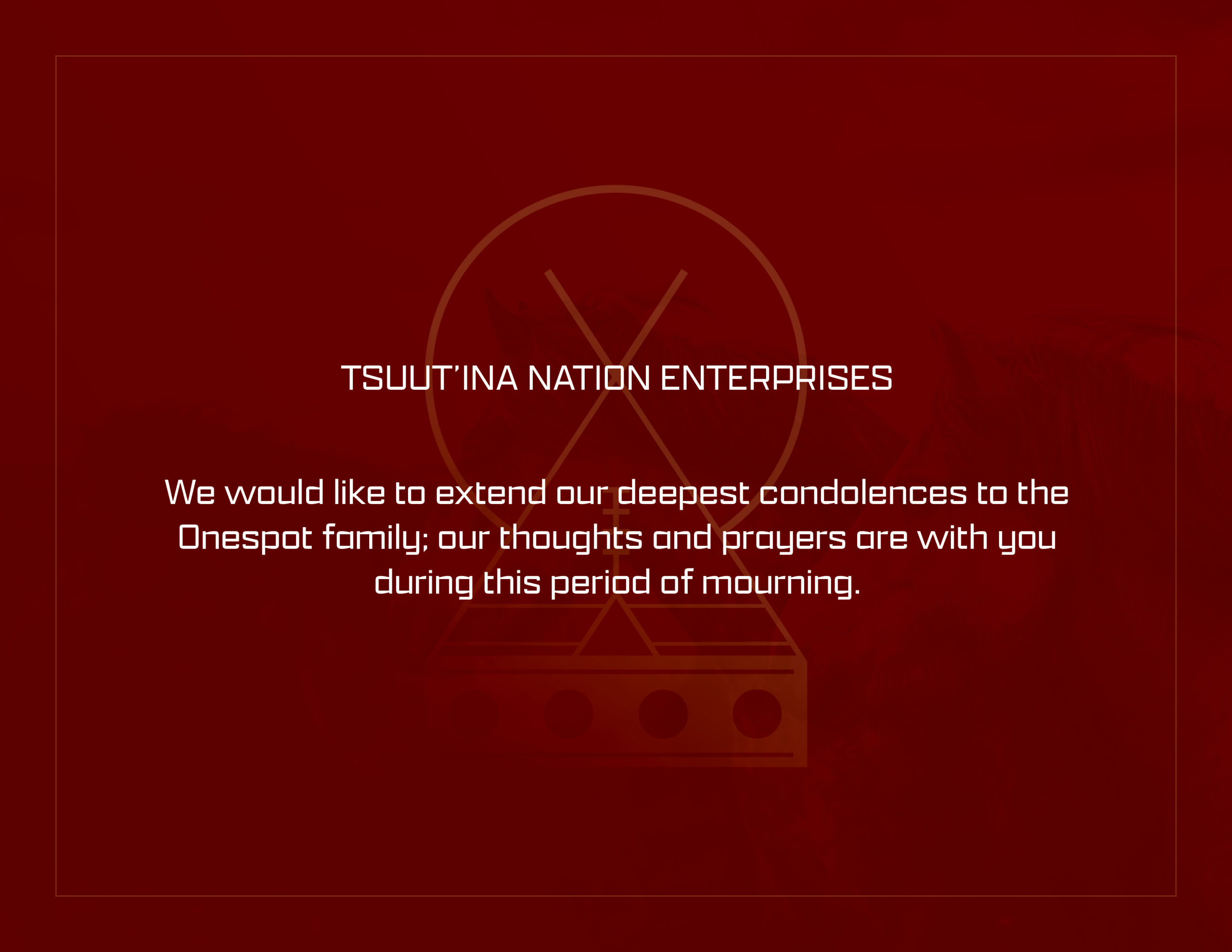 Dzīnísī gújā(Good day), On behalf of Tsuut’ina Nation Enterprises, we are sending our prayers and condolences to the Onespot Families. ...