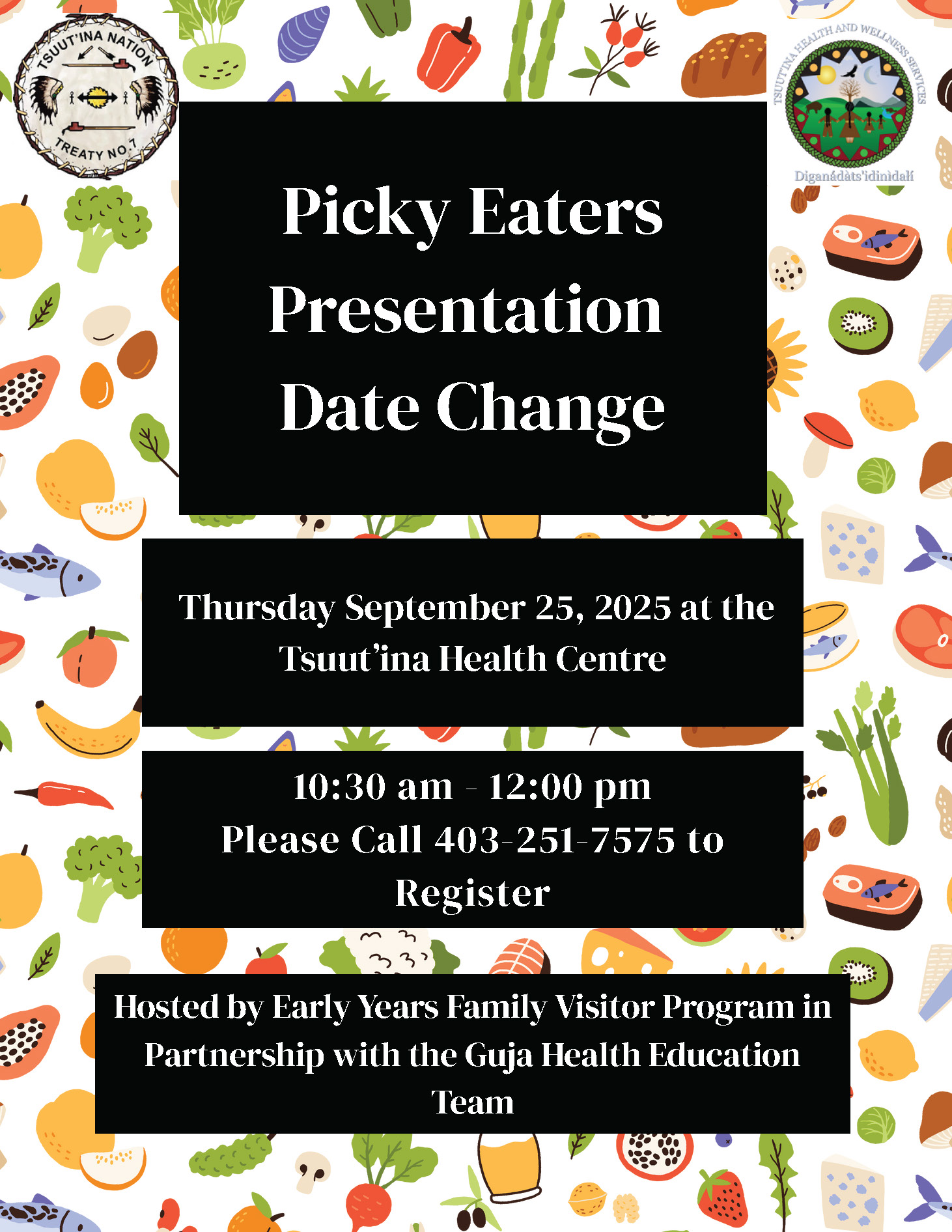 Dzīnísī gújā(Good day), Please be advised that the Picky Eaters Session with Amy Neufeld has been rescheduled to September 25th, 2025, from 10:30 ...